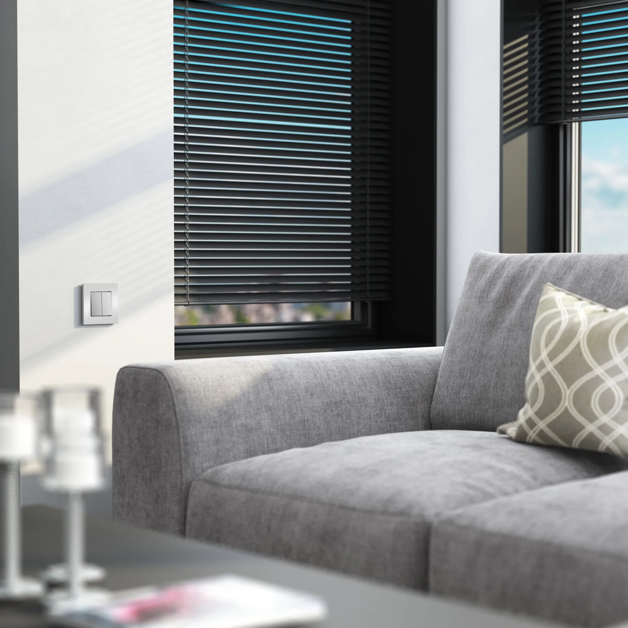 Самовозвратный двухклавишный выключатель W1122406 серебряный разработан для комфортного и безопасного контроля работы электрических приводов разнообразных устройств. Его функция заключается в переключении одной цепи, при этом после нажатия кнопка возвращается в первоначальное положение. Одна кнопка выключателя отвечает за перемещение механизма в одном направлении, а другая - в противоположном. К примеру, это может быть подъем и опускание жалюзи, открытие и закрытие ворот.