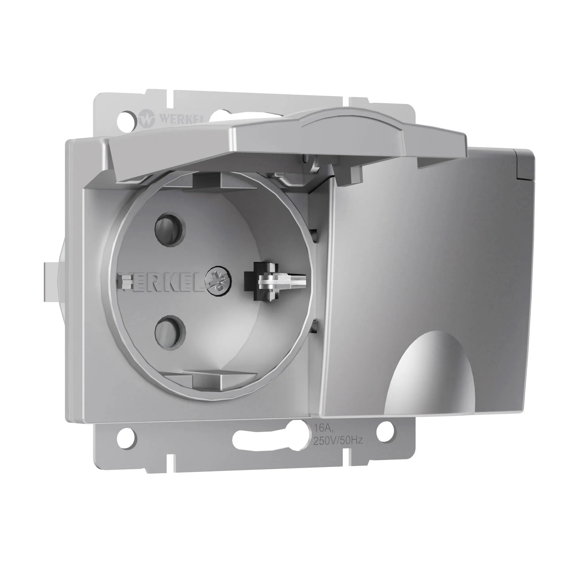 Розетка влагозащищённая с заземлением, крышкой и шторками серебряный W1172206 — безопасность и стиль для влажных зон