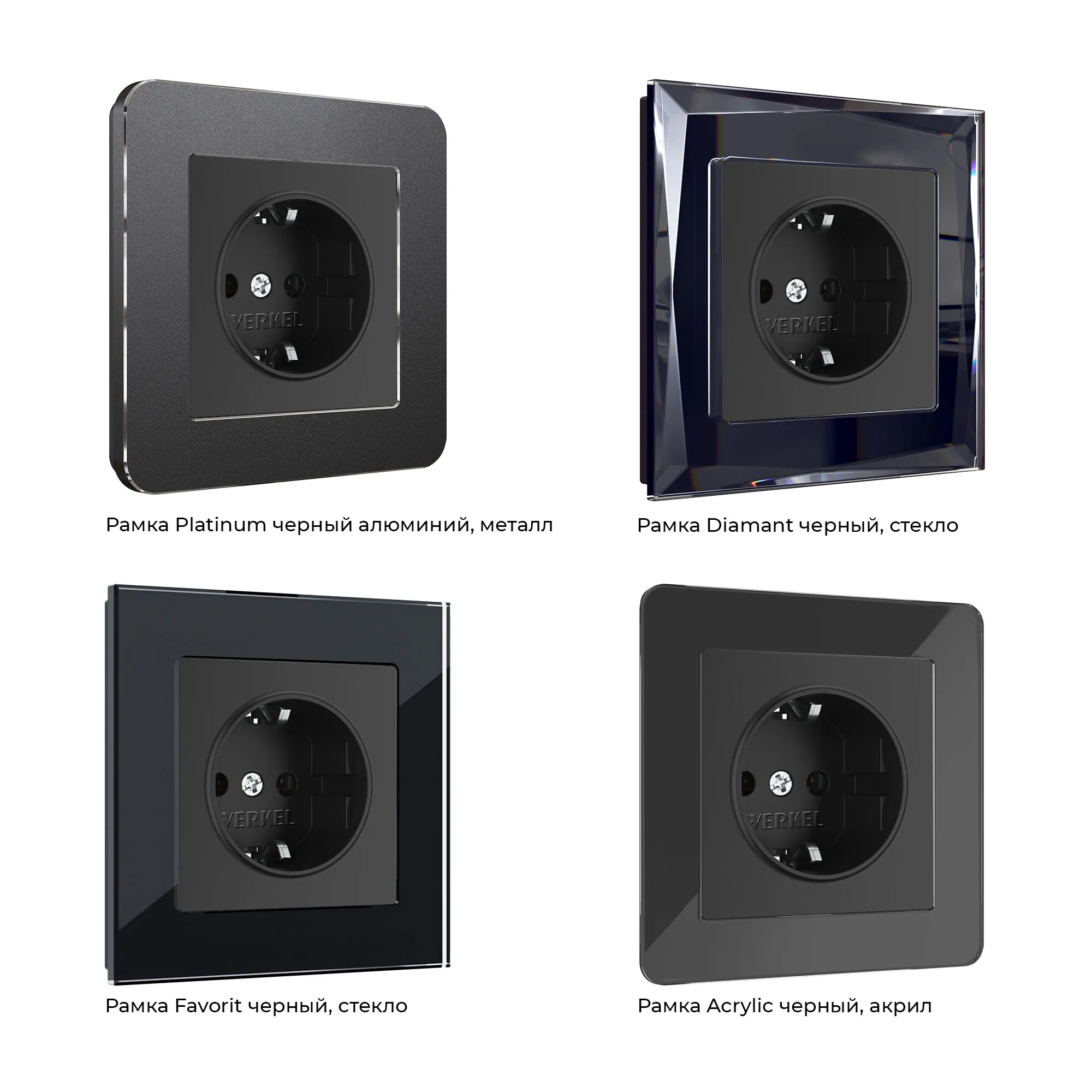 Лицевая панель выполнена в матовом черном цвете с бархатистой фактурой и тактильной мягкостью. Такая поверхность не бликует, не притягивает пыль и идеально вписывается в любые стили — от скандинавского минимализма до лофта и классики. Черный цвет гармонично сочетается с любыми отделочными материалами, а универсальная совместимость со всеми рамками Werkel позволяет создавать индивидуальные композиции под ваш вкус.