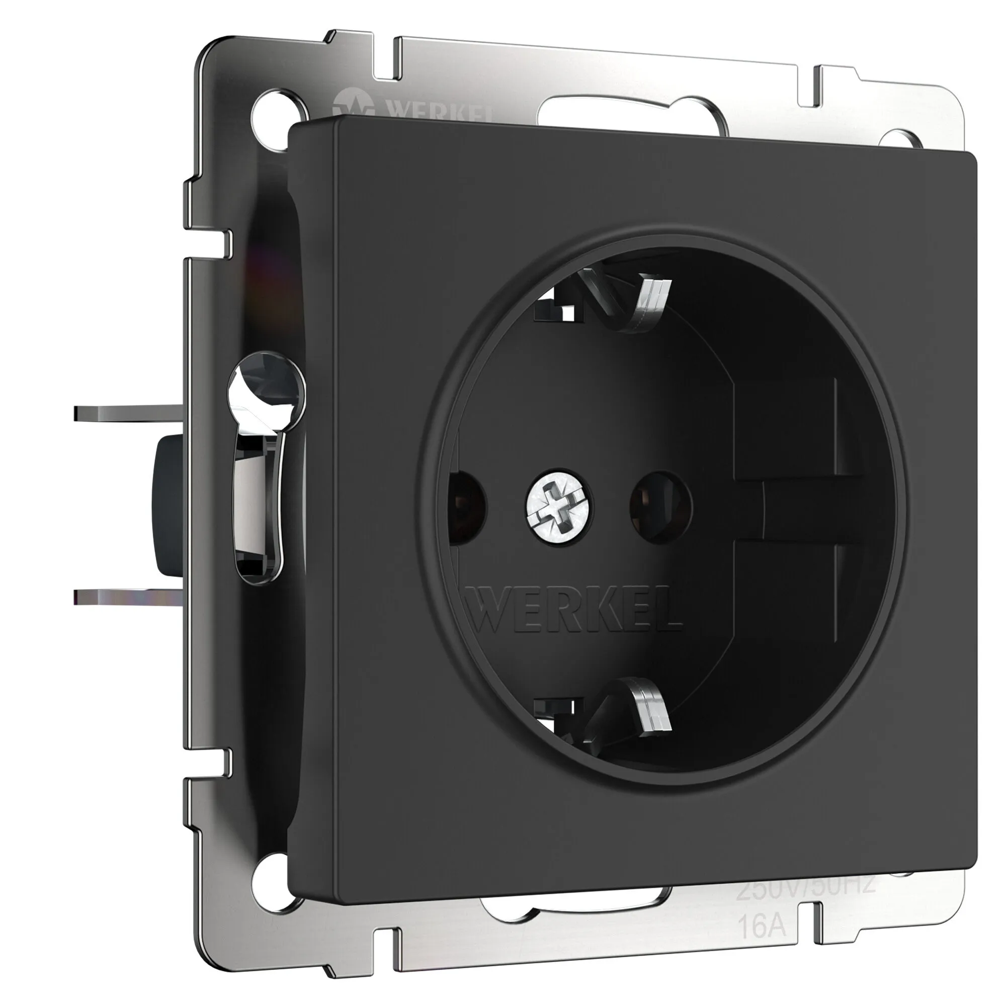 Розетка с заземлением 16 А черный матовый W1171008 — стиль, безопасность и долговечность от Werkel