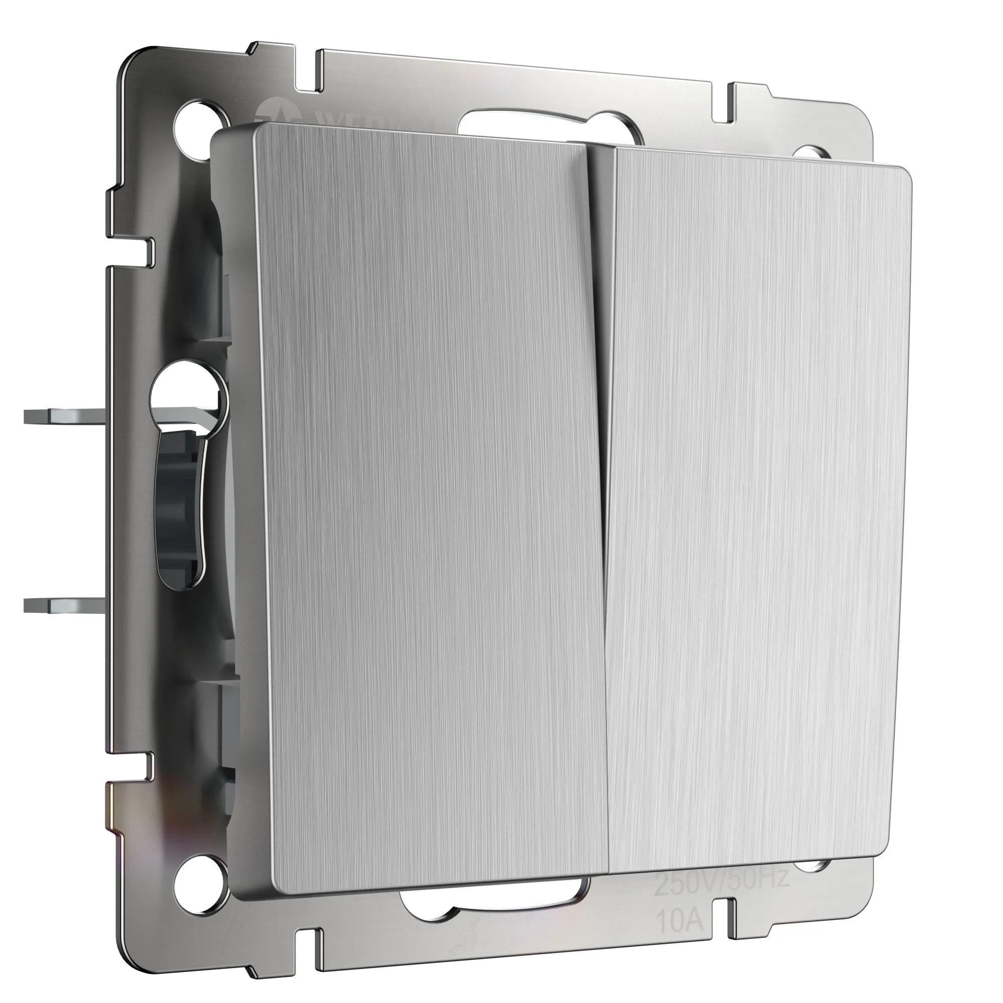 Выключатель двухклавишный (cеребряный рифленый) W1120009