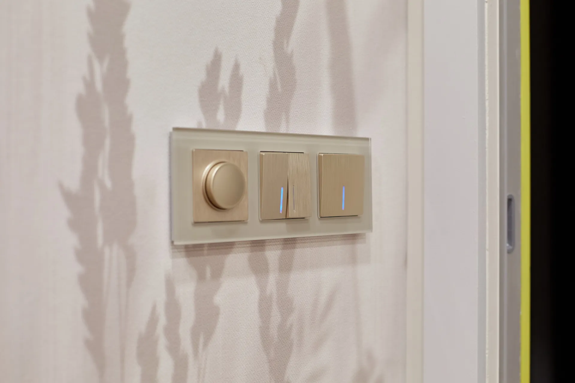 Гармоничным завершением интерьера стали электроустановочные изделия Werkel™. Эффектные механизмы с лицевыми панелями в благородном цвете шампань рифленый обрамлены элегантными рамками из закаленного стекла серии Favorit. Имитация шлифованного металла создает мягкие переливы на свету, добавляя интерьеру изысканности, а строгие стеклянные рамки подчеркивают современный стиль помещения .