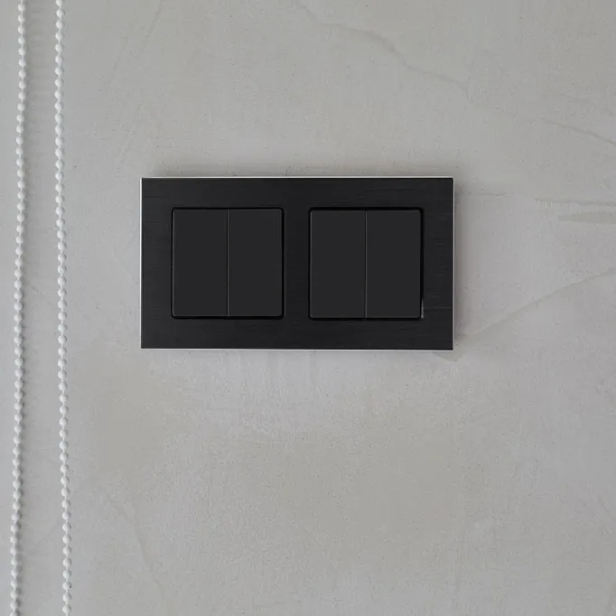 • Эстетика: черные матовые механизмы и рамки с зеркальной фаской создают гармоничный тандем, который дополняет минималистичный дизайн помещения .
