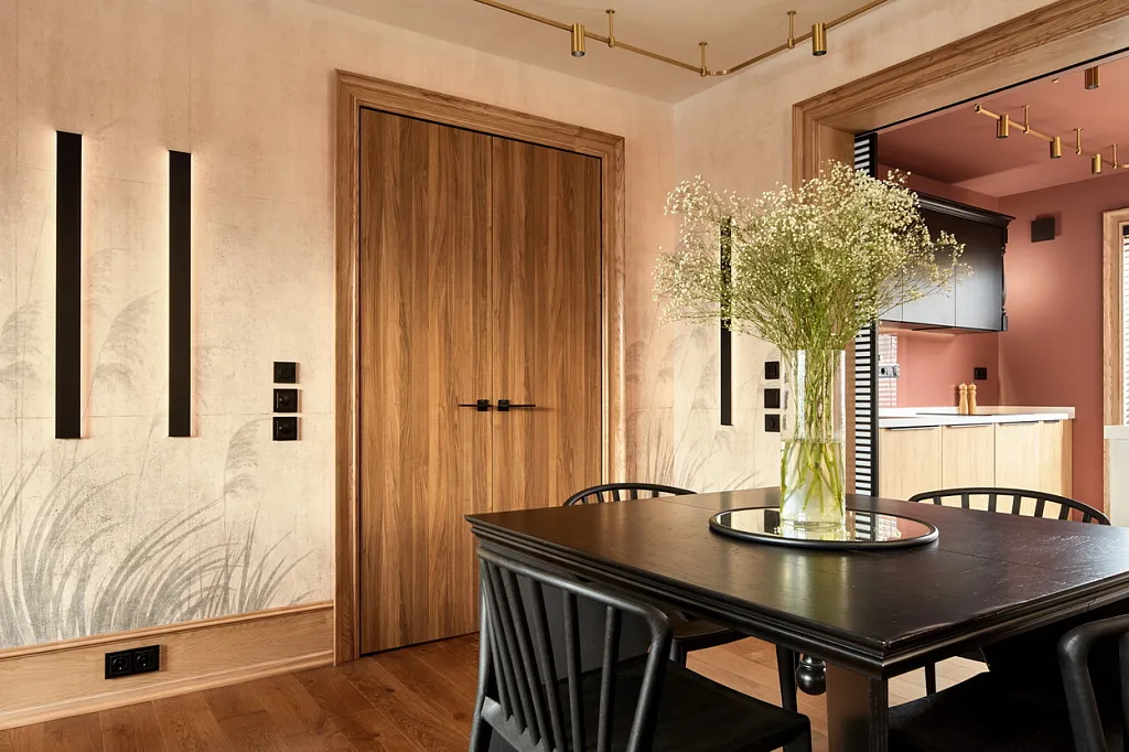 Интерьер сочетает в себе легкость прованского стиля и лаконичность минимализма. В пространстве появились натуральные материалы, мягкие текстуры и светлые тона, которые подчеркивают связь с природой. Большие окна открыли вид на сад, добавляя интерьеру воздушности и света. Каждый элемент продуман так, чтобы сохранить баланс между комфортом и элегантной простотой .