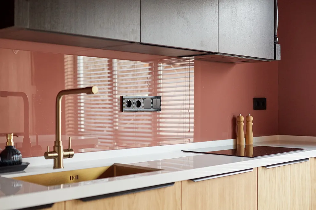 Особое внимание уделили деталям. В проекте использовали розетки и выключатели Werkel™, обрамленные эффектной серией рамок Favorit из закаленного стекла с идеально отшлифованными фасками. Эти изделия стали стильным акцентом интерьера, подчеркивая его современный характер и завершенность. Лаконичный дизайн рамок идеально вписывается в концепцию деревенского минимализма, не перегружая пространство лишними деталями .